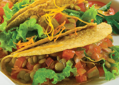 Mezcle bien con las lentejas. Reserve. Coloque al gusto en cada uno de los tacos
